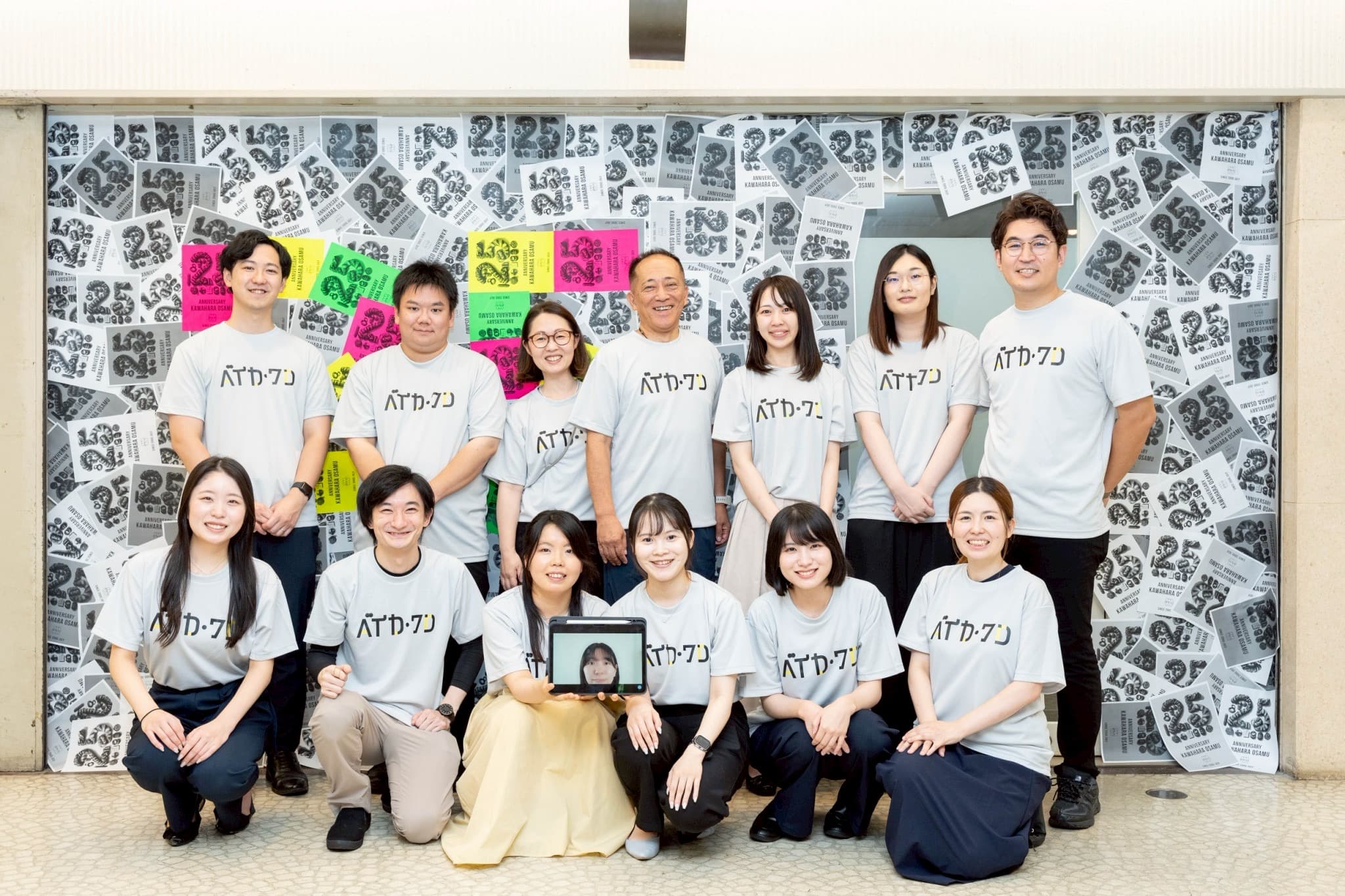 当日は、デザイナーの前田様に作っていただいた素敵なロゴをあしらったお揃いのTシャツで皆様をお迎えしました。このサプライズ企画を成功に導いてくれたのは、最高のスタッフたちです。このメンバーと共に仕事ができることを、心から誇りに思います。